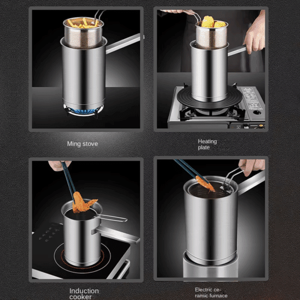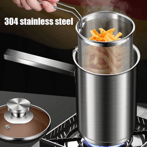Mit diesem Frittier-Topf aus Edelstahl zaubern Sie knusprige, goldbraune Gerichte wie Pommes, Tempura, Hähnchen oder Gemüse – ganz einfach und zuverlässig. Der Topf besteht aus hochwertigem 304 Edelstahl, ist langlebig, rostfrei und hygienisch. Dank seiner optimalen Wärmeleitung erhitzt er sich schnell und sorgt für gleichmäßige Frittierergebnisse.
